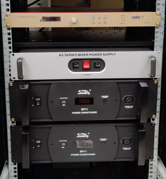 DM1616音頻數(shù)字處理器則充分滿足所有比賽對(duì)高品質(zhì)聲音系統(tǒng)的不同需求,基于AoIP技術(shù)的網(wǎng)絡(luò)化音頻矩陣處理設(shè)備,能協(xié)同網(wǎng)絡(luò)音箱、網(wǎng)絡(luò)話筒、虛擬音源以及傳統(tǒng)模擬和數(shù)字音頻設(shè)備完成各類中小規(guī)模音頻系統(tǒng)的核心處理任務(wù)。EP11電源凈化器的加入,使得系統(tǒng)的安全性更高。