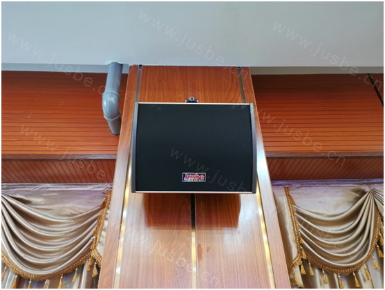 根據(jù)該院校2個項目廳內的建筑布局、容積大小及會議擴聲要求,綜合分析考量,廳內揚聲器選用了同軸會議音箱。此款音箱采用點聲源同軸結構設計,能夠提供90°的軸對稱恒指向性輸出,可以避免傳統(tǒng)號筒高音和低頻喇叭單元組合的典型極性波瓣干涉效應的弱點,解決相位偏差的問題,高低音頻率信號都以同一軸線傳播到觀眾耳中?茖W合理的布局安裝,做到聲像定位準確、 聲音覆蓋均勻,觀眾區(qū)擁有音質清晰、聲音細膩的語言環(huán)境,且還能最大程度的減少嘯叫產(chǎn)生。