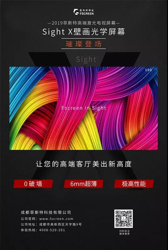 2019年10月18日—10月20日,光學(xué)屏幕廠商菲斯特?cái)y高端激光電視屏幕新品—Sight X壁畫光學(xué)屏幕在成都國(guó)際音響展上首次重磅亮相!