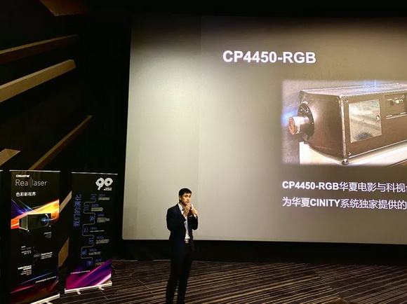 張晗先生介紹道:科視全新的 RealLaser™ 品牌,旨在實現(xiàn)影城全 RGB 安裝的目標。目前,我們已經(jīng)與華夏電影合作定向開發(fā)了 CP4450-RGB,為華夏 CINITY 系統(tǒng)獨家提供的放映機型。