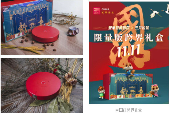 堅果團隊打造了華誕70周年限定款1080P投影儀,并與三只松鼠共同打造限定版禮盒,吃堅果看堅果,從口感到眼觀,將人在觀影時需要的感受也形成了閉環(huán)。