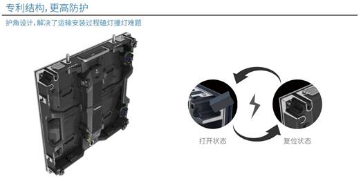 租賃屏經(jīng)常有搬運的需要,所以LED屏本身的設(shè)計要有能夠耐搬運的堅固性,特別是箱體四周,不然在搬運過程中很容易碰撞,造成LED損壞,即使是一顆LED燈壞掉也會影響到整體的效果。所以易事達領(lǐng)航系列延續(xù)了輕翼系列的防撞角設(shè)計,經(jīng)過多輪測試,有效防止磕燈、死燈情況。