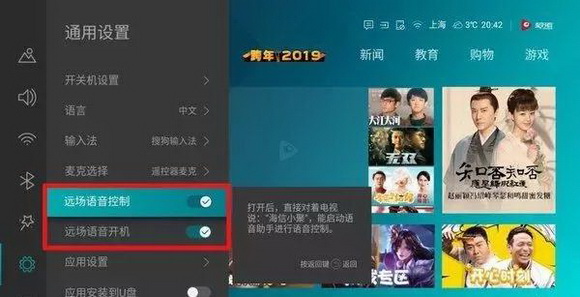 當(dāng)然,你也可以把“遠(yuǎn)場語音開機(jī)”功能一并打開,這樣在電視待機(jī)時(shí),直接對(duì)著電視說:“海信小聚”,就能打開電視啦。