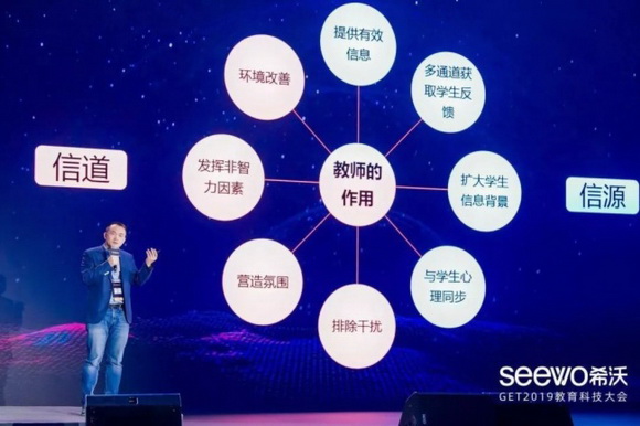 11月26日上午,視源股份未來教育集團(tuán)(希沃)總裁黃明寒 作為“教學(xué)相長,學(xué)以促用”領(lǐng)袖論壇當(dāng)天的首位分享嘉賓,帶來《從信息角度看教育信息化》 的主題演講,從教育信息化與數(shù)字產(chǎn)業(yè)化、教學(xué)過程信息流、教師的作用等等方面,談及當(dāng)前教育信息化的建設(shè)思路。