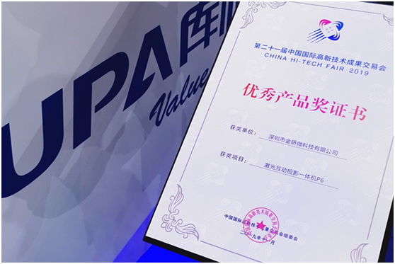 過硬的研發(fā)實(shí)力與產(chǎn)品也同樣得到了本屆高交會專家組委會的認(rèn)可,KUPA(庫帕)參展的“激光互動投影一體機(jī)P6”從眾多參選產(chǎn)品中脫穎而出,榮獲優(yōu)秀產(chǎn)品獎。金研微科技作為深圳龍華區(qū)入駐企業(yè),堅(jiān)決貫徹落實(shí)“中國制造 2025”發(fā)展計(jì)劃和“智造龍華”發(fā)展戰(zhàn)略,力爭用更多新技術(shù)新產(chǎn)品為龍華區(qū)的創(chuàng)新發(fā)展來代言。