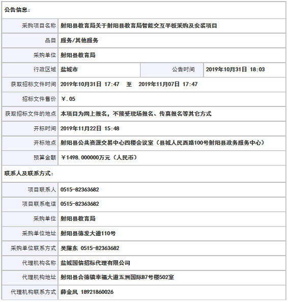 采購(gòu)項(xiàng)目名稱: 射陽(yáng)縣教育局關(guān)于射陽(yáng)縣教育局智能交互平板采購(gòu)及安裝項(xiàng)目