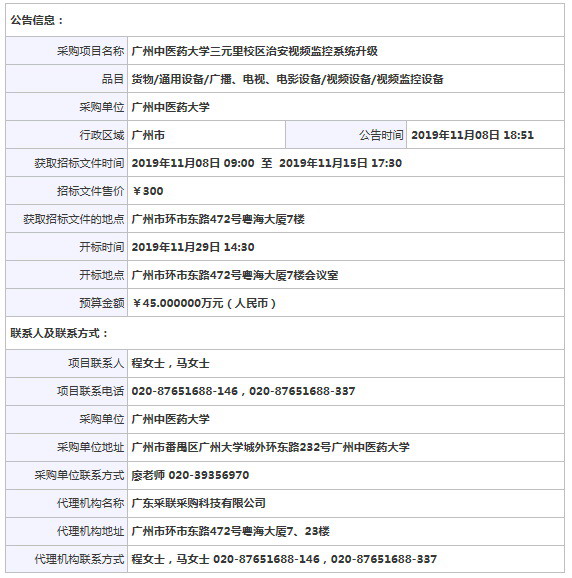 采購項目名稱: 廣州中醫(yī)藥大學(xué)三元里校區(qū)治安視頻監(jiān)控系統(tǒng)升級