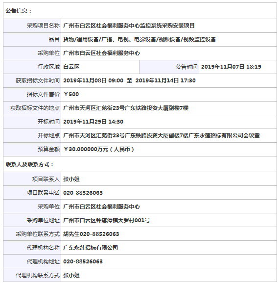 采購(gòu)項(xiàng)目名稱(chēng): 廣州市白云區(qū)社會(huì)福利服務(wù)中心監(jiān)控系統(tǒng)采購(gòu)安裝項(xiàng)目