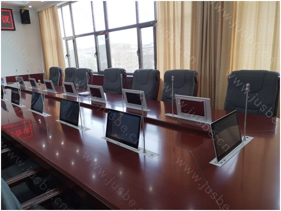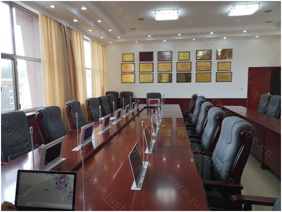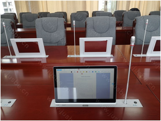 該項目會議桌安裝的內(nèi)嵌式桌面雙顯帶話筒升降一體終端,屏幕界面美觀、簡明,操作方便,全程只需觸控屏幕即可完成會議內(nèi)容的各項操作,極大提高了會議效率。整套無紙化會議系統(tǒng)功能豐富,可提供會議電子簽到、會議議程、資料上傳下載、表決投票、資料共享、文檔同步閱讀、同屏投影、批注、文檔加密、電子白板交流、網(wǎng)頁瀏覽、視頻播放等多種會議服務(wù)功能。通過這種全程無紙就能貫通會議環(huán)節(jié)的會議方式,為組織會議人員和參會人員提供了一個極其實用、高效的無紙化會議平臺。