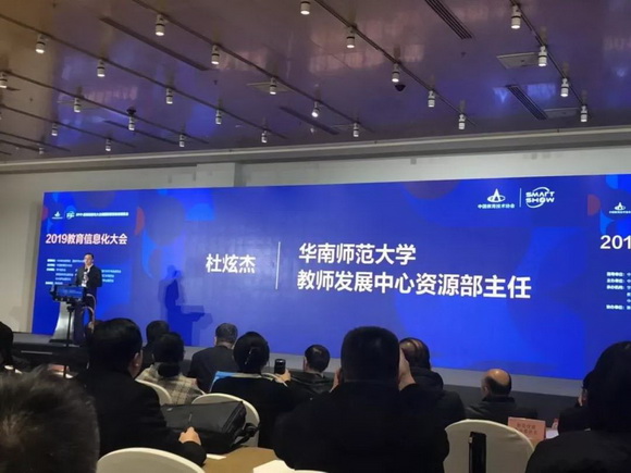 會(huì)上,黃榮懷教授、楊曉健副會(huì)長等專家學(xué)者都上臺(tái)進(jìn)行了教育信息化發(fā)展的報(bào)告。華南師范大學(xué)教師發(fā)展中心資源部主任杜炫杰博士分享了《校園學(xué)習(xí)空間建設(shè)與應(yīng)用案例》。