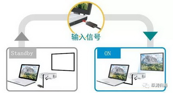 當(dāng)投影機(jī)處于待機(jī)模式并檢測(cè)到外部設(shè)備的視頻信號(hào)輸入時(shí),此功能啟動(dòng)投影機(jī)以在屏幕上自動(dòng)顯示圖像。