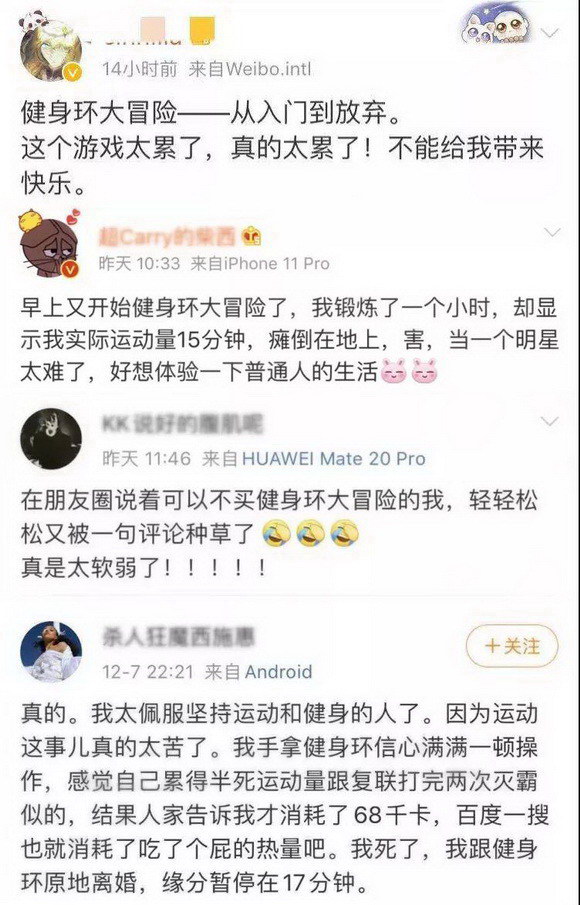 然鵝,不少人吐槽,擁有健身環(huán)的人大都有一個特點。收到后興匆匆的發(fā)幾條朋友圈,就再也沒有聽到其中任何一個人提起這個健身環(huán)。它到底有沒有繼續(xù)存在,真是薛定諤的環(huán)~