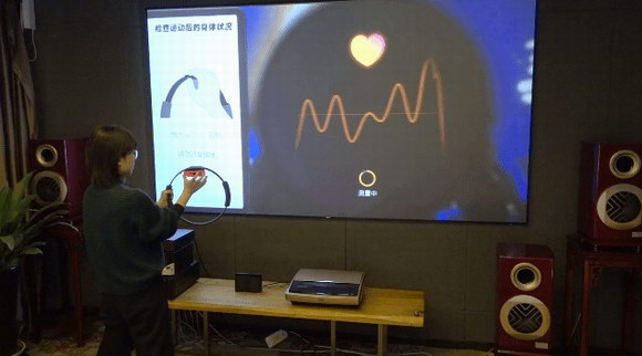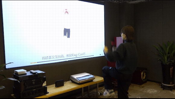 于是,我不得不跟隨游戲進程原地小跑步(由于屏幕太大,總會不由自主跑前往,不注意就會磕到桌子上, 臨場感實在是太強了。陂g我不單要通過諸如深蹲、卷腹、上舉推壓等運動來打小怪,動作做得越標準,打怪就會越疼!