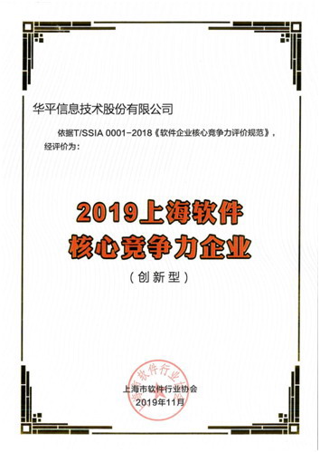 華平榮膺“2019上海軟件核心競(jìng)爭(zhēng)力企業(yè)(創(chuàng)新型)”
