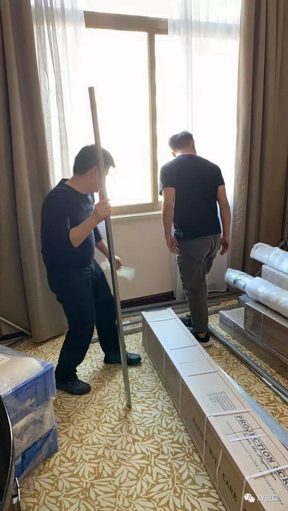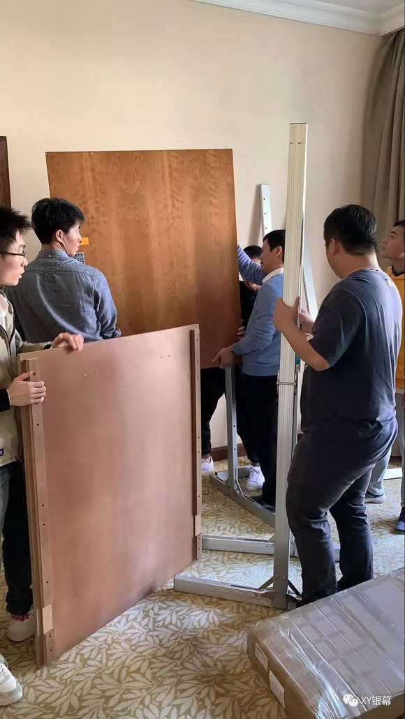 現(xiàn)場工作人員細致布置產(chǎn)品