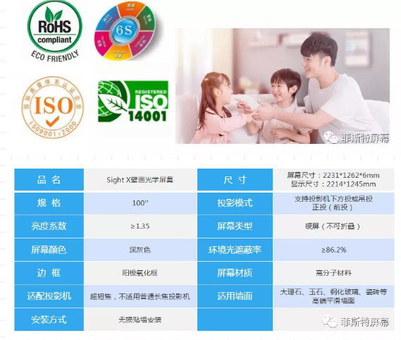 菲斯特FS光學(xué)屏幕類型:正投(前投),硬屏(不可折疊)