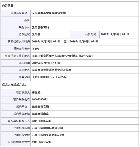 元氏縣中小學(xué)錄播教室采購(gòu)招標(biāo)公告