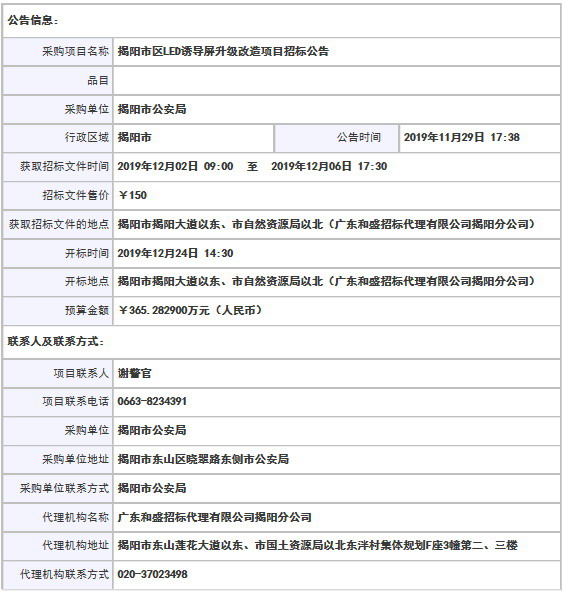 采購項目名稱: 揭陽市區(qū)LED誘導(dǎo)屏升級改造項目招標(biāo)公告