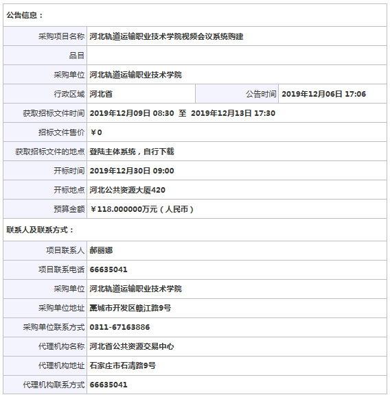 河北軌道運(yùn)輸職業(yè)技術(shù)學(xué)院河北軌道運(yùn)輸職業(yè)技術(shù)學(xué)院視頻會議系統(tǒng)購建公開招標(biāo)
