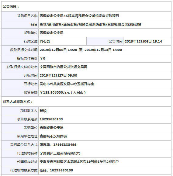 采購項目名稱: 青銅峽市公安局4K超高清視頻會議系統(tǒng)設(shè)備采購項目