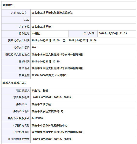 采購項(xiàng)目名稱: 西安市工讀學(xué)校視頻監(jiān)控系統(tǒng)建設(shè)