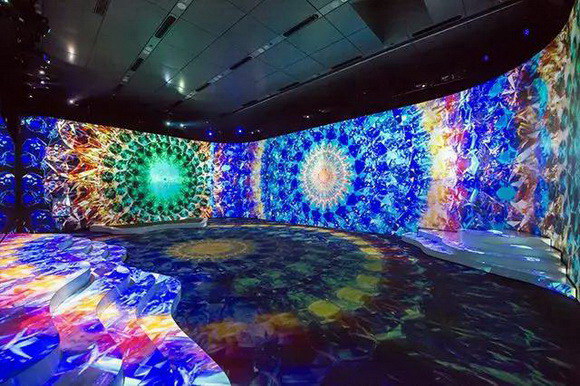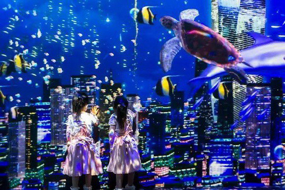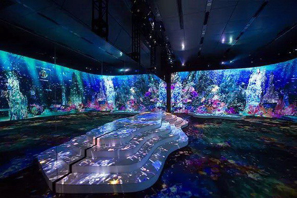 在上海環(huán)球金融中心的4層和94層,近2,000平方米的雙層聯(lián)動(dòng),以海洋為主題,傾情呈現(xiàn)14組由松下工程投影機(jī)投射出的投影空間作品——如!た臻g,為觀眾們帶來了全新垂直沉浸式互動(dòng)感官體驗(yàn)。