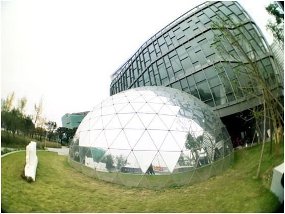 走近遂寧市文化中心,我們感嘆于時尚先鋒的建筑外觀,它由中國建筑設計院設計,是一座具有綠色建筑三星獎和中國建筑工程魯班獎的高水準文化中心。科技館位于整個建筑的北側(cè),球幕影廳非常醒目,耀眼的反光玻璃外觀的半球型建筑,如同一顆明珠佇立。