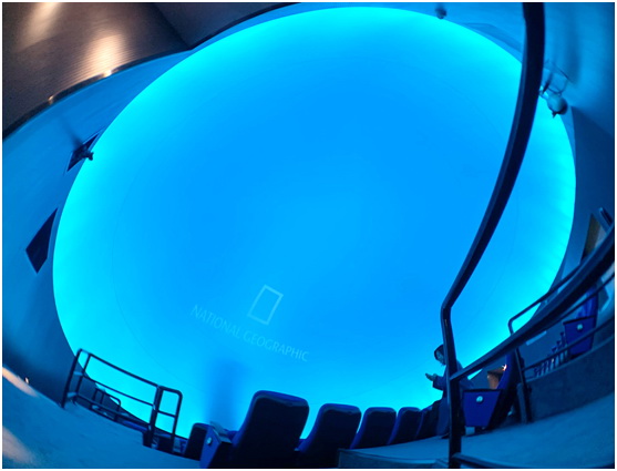 進入球幕影廳,巨大的穹頂屏幕出現(xiàn)在我們眼前,還未播放畫面時就以讓人感覺到宏大質(zhì)感。據(jù)悉,這里的球幕直徑13.5米,由6臺索尼4K激光虛擬仿真投影機VPL-GTZ280配合VPLL-Z7008短焦鏡頭(電動變焦/聚焦,投射比0.8:1至1.02:1)拼融實現(xiàn)8K畫面。球幕影廳共設有72個座位,每一個進入這里的觀眾都能獲得震撼的觀感。