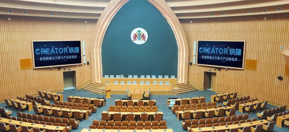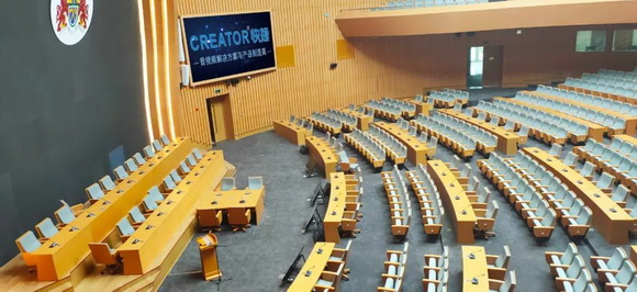 我們?yōu)閷葋唶H會議中心提供了1500套紅外接收機(jī)、1500副雙邊耳機(jī)、200余套DIG系列數(shù)字會議系統(tǒng)和無線WIFI系統(tǒng)、19套可視化交互多媒體控制系統(tǒng)、5臺大型混合拼接矩陣。這一系列的配備,滿足了不同功能會議室的場合需求,全方位打造了一個現(xiàn)代信息化的國際會議中心。