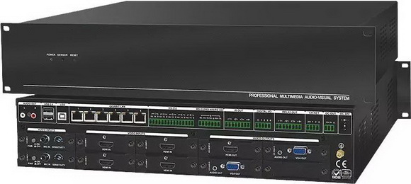 為了滿足多個會議室之間的信號切換傳輸及統(tǒng)一管理,我們采用了5臺PRO系列混合拼接矩陣,對岡比亞國際會議中心所有的音頻信號進(jìn)行有效的管理與切換。