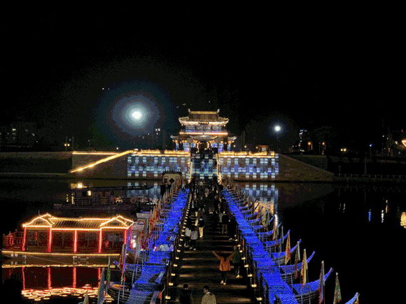 享有“千年古鎮(zhèn)、清風商埠、佛教圣地”美譽的佛堂鎮(zhèn)是浙江四大古鎮(zhèn)之一,在今年的“十月十”民俗文化節(jié)中,佛堂鎮(zhèn)打造了一場“佛堂古鎮(zhèn)萬善浮橋3D燈光投影秀”。目前該投影秀已經成為佛堂鎮(zhèn)的固定演出節(jié)目,每周會進行兩次演出,是佛堂鎮(zhèn)“文旅興鎮(zhèn)”計劃的亮點項目。