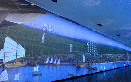 首先,“時空隧道”其實(shí)就是行人通道,墻面的顯示畫面光路不能穿過人群,否則會給展示畫面形成遮擋;其次,為了配合“時空隧道”的整體性和美觀性,投影顯示方案需采用隱藏式設(shè)計;最后,“時空隧道”需要7×24小時運(yùn)行,而且是在戶外,對投影機(jī)的壽命、亮度具有一定的要求。