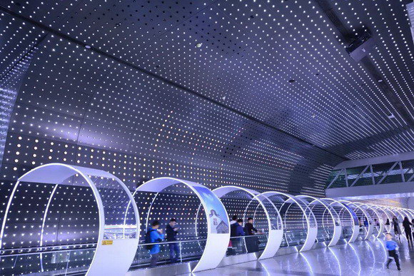 全程突出“云+”的概念,分為“云之‘家’‘夢’‘心’‘城’”四個空間,整體以“云”為設(shè)計主元素,既與“白云機(jī)場”的“云”相呼應(yīng),又寓意飛機(jī)穿越云端,與未來“云時代”對話。白云機(jī)場相關(guān)負(fù)責(zé)人介紹,打造特色“時空隧道”,通過前沿技術(shù)帶來科幻特色體驗(yàn),一方面重在增加地方特色和機(jī)場特色;另一方面提升旅客出行體驗(yàn)。