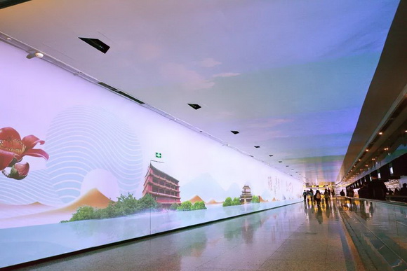 經(jīng)常乘坐飛機(jī)出行的朋友,特別是飛廣州的朋友一定知道白云機(jī)場“絲路穿越”之“時空隧道”。隧道全長約200米,面積超過了2500平方米,借助新科技打造的“動靜結(jié)合、人景結(jié)合、虛實(shí)結(jié)合”炫酷時空長廊,集公共服務(wù)、藝術(shù)展示、廣告發(fā)布于一體,是該機(jī)場首推的融媒體模式大型藝術(shù)體驗(yàn)新空間,在全國機(jī)場尚屬首創(chuàng)。