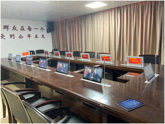 此套無紙化會議系統(tǒng)同時(shí)與數(shù)字法院系統(tǒng)平臺融合對接,會議進(jìn)行時(shí)可通過辦案系統(tǒng)內(nèi)的電子卷宗直接同步至無紙化系統(tǒng)平臺了解相關(guān)案情,進(jìn)一步提高會議審判效率和質(zhì)量。