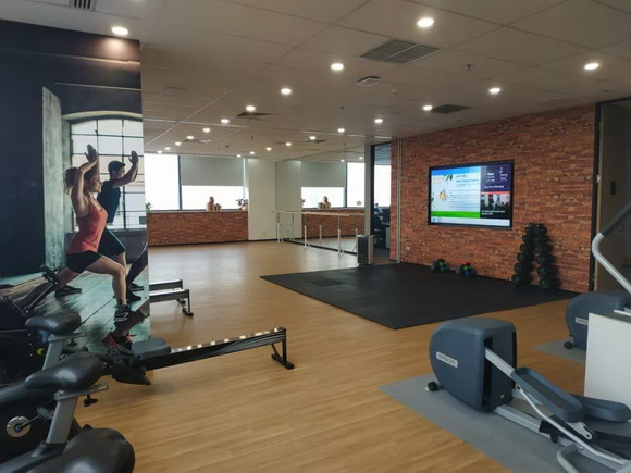 占地130m² 的健身空間,使用86”高清顯示器,支持本地高清輸入和無(wú)線投影,搭配手持麥克風(fēng)、領(lǐng)夾麥克風(fēng)和天花吸頂音箱,讓人在健身娛樂(lè)的同時(shí)更加放松身心。