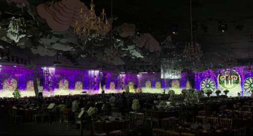 科視 christie d13hd-hs 和 d16hd-hs 投影機(jī)在 long vi palace 宴會(huì)廳的三面墻壁上投射出明亮生動(dòng)的影像(圖片由 long vi palace 提供)
