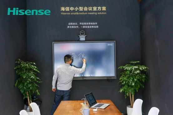 其中,中小型會議室方案集成全場景會議平板R6系列,搭配海信傳屏寶和攝像頭,瞬間解鎖便捷本地會議與流暢遠程會議的雙重體驗。本地會議中,使用海信傳屏寶即可將電腦上的內容投到大屏,無需任何連接線,帶來輕松便捷的會議體驗,客戶在現(xiàn)場體驗后不禁感慨:“傳屏寶真的太好用了!能為會議帶來極大的便利,從而提升會議效率!”不僅如此,在海信遠程會議中,共享協(xié)作白板、共享桌面等功能,更可以讓企業(yè)員工足不出會就能與世界各地面對面交流。