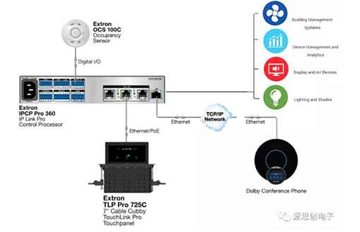 愛思創(chuàng)電子宣布 Extron 已與 Dolby 合作,將 Extron Pro 系列視音頻控制解決方案無縫集成至 Dolby 會(huì)議電話。未來您可以將 Extron 控制功能擴(kuò)展至 Dolby 會(huì)議電話系統(tǒng),實(shí)現(xiàn)現(xiàn)代會(huì)議空間內(nèi)視音頻及會(huì)議的一體化控制。通過與 Extron Pro 系列控制系統(tǒng)集成,您只需輕擊TouchLink Pro 觸摸屏,便可輕松控制通話音量以及顯示器開關(guān)、窗簾和燈光等自動(dòng)化功能。占用感應(yīng)器也可被集成至這一自動(dòng)化系統(tǒng),當(dāng)感應(yīng)到與會(huì)者進(jìn)入會(huì)議室時(shí)自動(dòng)開啟顯示器。該解決方案重新定義了極簡(jiǎn)的系統(tǒng)控制,同時(shí)也實(shí)現(xiàn)了對(duì)室內(nèi)其它視音頻設(shè)備輕松、便捷的集中控制,最終為用戶帶來卓越不凡的協(xié)作體驗(yàn)。