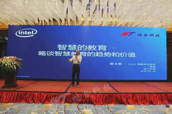 作為鴻合科技多年友好戰(zhàn)略合作伙伴,Intel一直為鴻合提供著技術及資源支持。大會現(xiàn)場,Intel物聯(lián)網(wǎng)市場銷售部客戶經(jīng)理陳文勝針對當代智慧教育的趨勢和價值進行了詳細解讀。并在現(xiàn)場發(fā)言表示:“Intel和鴻合不斷進步的背后離不開在坐并肩作戰(zhàn)合作伙伴的支持與信任。未來,Intel與鴻合將繼續(xù)強強聯(lián)手,與眾多合作伙伴們互惠共贏,共同助力中國智慧教育行業(yè)發(fā)展!