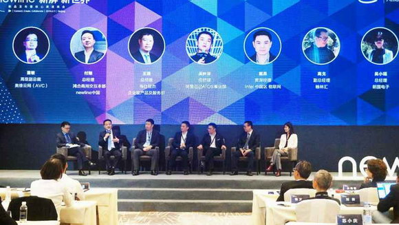 之后,董敏先生邀請多位大咖嘉賓上臺,進行了一場簡短而精彩的newline論壇。鴻合商用交互本部總經(jīng)理付翔先生、偉仕佳杰企業(yè)級產(chǎn)品及服務(wù)群總經(jīng)理王強先生、AliOS TV事業(yè)部總經(jīng)理吳仲深先生、Intel中國區(qū)物聯(lián)網(wǎng)資深經(jīng)理戴果先生、翰林匯副總經(jīng)理高戈先生、朗國電子總經(jīng)理吳小瑤女士,分享了他們對商顯市場的觀察與思考,并表達了與newline合作的愿景與期待。論壇結(jié)束時,眾位嘉賓攜手并立,踐行newline品牌所蘊含的合作共贏精神。
