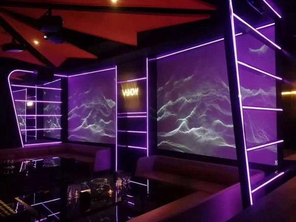 激光投影系統(tǒng)帶來的“光影變化”,提供了KTV行業(yè)至少兩大革新價值點:第一,激光大屏為KTV包房提供更大的融入式顯示體驗;第二,用激光投影實現(xiàn)的裝潢文化風(fēng)格和主題的變化,僅僅依賴于數(shù)字內(nèi)容的創(chuàng)新,極大的增強(qiáng)了KTV體驗氛圍的多變性。