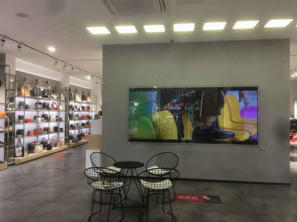 例如試穿區(qū)和休息區(qū)的拼接海報(bào),則可以播放品牌宣傳視頻以及商品場(chǎng)景圖,既裝飾店面,又能營(yíng)造舒適氛圍,在試鞋過(guò)程中無(wú)形影響顧客心理。原本只是搖擺于“試穿”和“購(gòu)買(mǎi)”之間,即使導(dǎo)購(gòu)員費(fèi)盡口舌,顧客也難回心轉(zhuǎn)意,卻可能拜倒在拼接海報(bào)“含情脈脈”的暗示中。