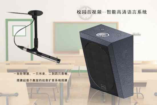 一臺處理器、一只吊麥、二到四只音響,搭建起整個教室的拾音擴(kuò)音系統(tǒng)搭建,達(dá)到老師自由講課,學(xué)生清晰聽課的理想效果。獨家專利功能:終端音響可同時作為校園廣播的擴(kuò)聲系統(tǒng),設(shè)備利用最大化,避免校園廣播與教學(xué)擴(kuò)聲的兩套系統(tǒng)重復(fù)投資。