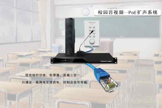 將傳統(tǒng)的功放、處理器、音箱三合一,只通過一根網(wǎng)線實現(xiàn)供電、控制及信號傳輸
