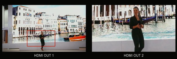 使用該功能,用戶可以快捷地從一個(gè)攝像機(jī)上拍攝的全景畫(huà)面中裁切出一個(gè)區(qū)域畫(huà)面,實(shí)現(xiàn)從一個(gè)攝像機(jī)上獲得兩個(gè)不同的輸出畫(huà)面的效果,用戶可以同時(shí)獲得一個(gè)4K的全景圖像和經(jīng)過(guò)裁切的高清圖像。而其中的裁切區(qū)域可選擇為靜態(tài)或動(dòng)態(tài),動(dòng)態(tài)時(shí)可自動(dòng)跟蹤畫(huà)面中演講者的移動(dòng)。(該功能將在2019年晚些時(shí)候的軟件更新中實(shí)現(xiàn)。)