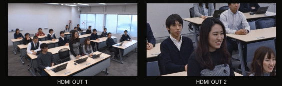 增強(qiáng)分析單元REA-C1000可以對(duì)全景畫(huà)面中的觀眾的姿勢(shì)進(jìn)行檢測(cè)和反應(yīng),當(dāng)一名觀眾站起來(lái)時(shí),REA-C1000可以觸發(fā)攝像機(jī)操作,以電子對(duì)焦的方式自動(dòng)放大此人的畫(huà)面,并同時(shí)輸出全景圖像和放大后的該觀眾的特寫(xiě)圖像。在教育環(huán)境中這一功能尤其有用,它可以用于評(píng)測(cè)學(xué)生的反應(yīng),也可以用于拍攝問(wèn)答互動(dòng)環(huán)節(jié)。