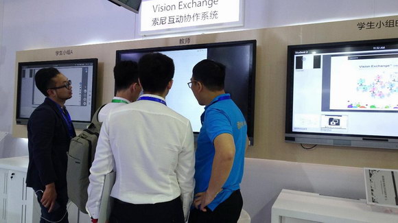 本次展出的眾多教育整體解決方案也同樣獲得了觀眾及各界的關(guān)注。索尼Vision Exchange互動協(xié)作系統(tǒng)解決方案,力求將“單向教學(xué)”變?yōu)椤盎诱n堂”環(huán)境,以PEQ-C100或PEQ-C130協(xié)作系統(tǒng)為中心,將學(xué)生、講師和演講者凝聚在一起,打造出動態(tài)工作組環(huán)境,聯(lián)動整個課堂,輕松共享多媒體內(nèi)容,甚至可將遠(yuǎn)程師生加入到討論當(dāng)中,實現(xiàn)“互動、協(xié)作、分享”理念。