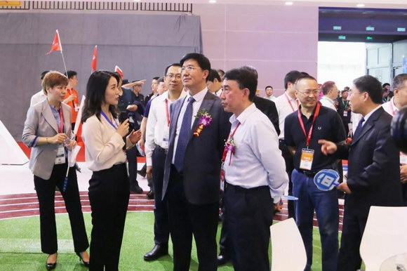 ▲深圳市教育局副局長(zhǎng)趙立,深圳市教育信息技術(shù)中心主任張惠敏,深圳市教育裝備行業(yè)協(xié)會(huì)會(huì)長(zhǎng)彭錦環(huán)等一行蒞臨銳取展位參觀指導(dǎo)