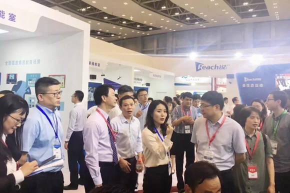 ▲天津各區(qū)教育局領(lǐng)導(dǎo)及天津ITE聯(lián)盟領(lǐng)導(dǎo)等一行蒞臨銳取展位參觀指導(dǎo)